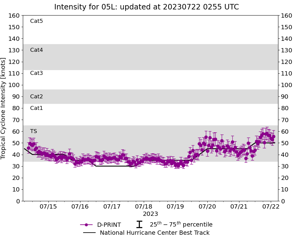 NORTH ATLANTIC OCEAN: TS 05L(DON). WARNING 32 ISSUED AT 220300UTC. CURRENT ESTIMATED INTENSITY IS 50 KNOTS: + 5 KNOTS/24H.