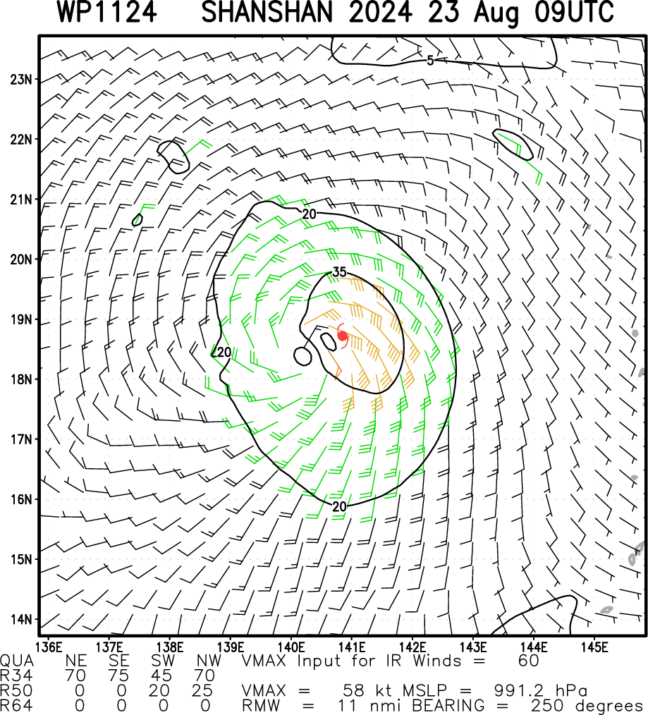WESTERN NORTH PACIFIC: TS 11W(SHANSHAN). 23/06UTC ESTIMATED INTENSITY IS 60 KNOTS: + 20 KNOTS OVER 24H