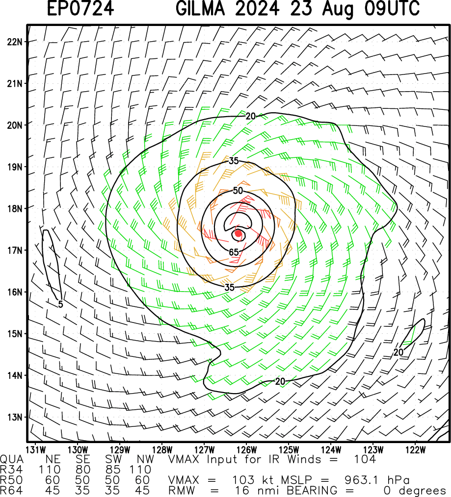 EASTERN NORTH PACIFIC: HU 07E(GILMA). 2306UTC ESTIMATED INTENSITY IS 105 KNOTS/CAT 3 US: + 5 KNOTS OVER 24 HOURS