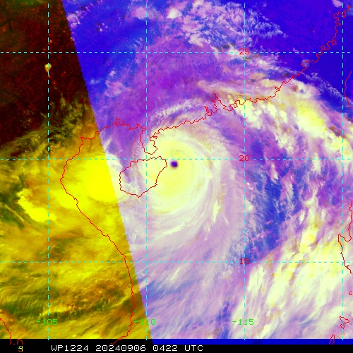 SATELLITE ANALYSIS, INITIAL POSITION AND INTENSITY DISCUSSION: AS INDICATED IN ANIMATED ENHANCED INFRARED (EIR) SATELLITE IMAGERY, TYPHOON (TY) 12W IS BEGINNING TO WEAKEN AS IT MAKES LANDFALL OVER NORTHERN HAINAN ISLAND. HOWEVER, EIR IMAGERY AND RADAR IMAGERY CONTINUE TO SHOW A ROUND 21NM EYE WITH A NEAR COMPLETE EYEWALL AND SPIRAL BANDING OVER THE SOUTHERN SEMICIRCLE. ALTHOUGH THE EYEWALL IS BEGINNING TO ERODE OVER THE WESTERN QUADRANT, THE OVERALL STRUCTURE REMAINS WELL-ORGANIZED WITH EXTENSIVE SPIRAL BANDING OVER ALL QUADRANTS. SURFACE OBSERVATIONS AT HAIKOU (ZJHK), OVER NORTHERN HAINAN ISLAND, HAVE INCREASED QUICKLY TO 52 KNOTS SUSTAINED (10-MINUTE AVERAGE) GUSTING TO 8O KNOTS, WITH SLP NEAR 970MB. OVERALL, THERE IS HIGH CONFIDENCE IN THE INITIAL POSITION BASED ON THE EIR IMAGERY. THE INITIAL INTENSITY IS ASSESSED AT 125 KNOTS BASED ON THE LOWER END OF THE AGENCY DVORAK CURRENT INTENSITY ESTIMATES AND OBJECTIVE INTENSITY ESTIMATES RANGING FROM 116 TO 132 KNOTS.