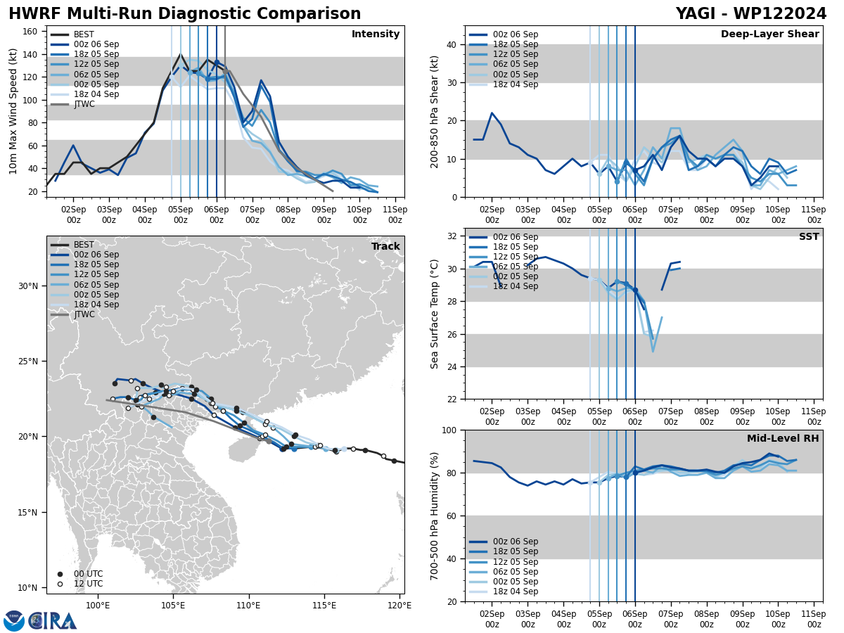 MODEL DISCUSSION: DETERMINISTIC MODEL GUIDANCE USED IN THE JTWC CONSENSUS (CONW) REMAINS IN TIGHT AGREEMENT WITH A 40NM CROSS-TRACK SPREAD AT TAU 24. PROBABILISTIC GUIDANCE FROM THE ECMWF (EPS) AND GFS (GEFS) ENSEMBLES ALSO REMAINS IN TIGHT AGREEMENT SUPPORTING THE JTWC TRACK FORECAST WITH HIGH CONFIDENCE. RELIABLE INTENSITY GUIDANCE IS ALSO IN VERY GOOD AGREEMENT SUPPORTING THE RAPID WEAKENING PHASE EXPECTED AFTER TAU 12.