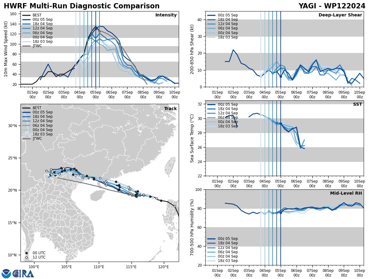 MODEL DISCUSSION: DETERMINISTIC MODEL GUIDANCE USED IN THE JTWC CONSENSUS (CONW) REMAINS IN TIGHT AGREEMENT WITH A 45-50NM CROSS-TRACK SPREAD FROM TAU 36 TO TAU 48. PROBABILISTIC GUIDANCE FROM THE ECMWF (EPS) AND GFS (GEFS) ENSEMBLES ALSO REMAINS IN TIGHT AGREEMENT SUPPORTING THE JTWC TRACK FORECAST WITH HIGH CONFIDENCE. RELIABLE INTENSITY GUIDANCE IS ALSO IN VERY GOOD AGREEMENT SUPPORTING THE RAPID WEAKENING PHASE EXPECTED AFTER TAU 24.