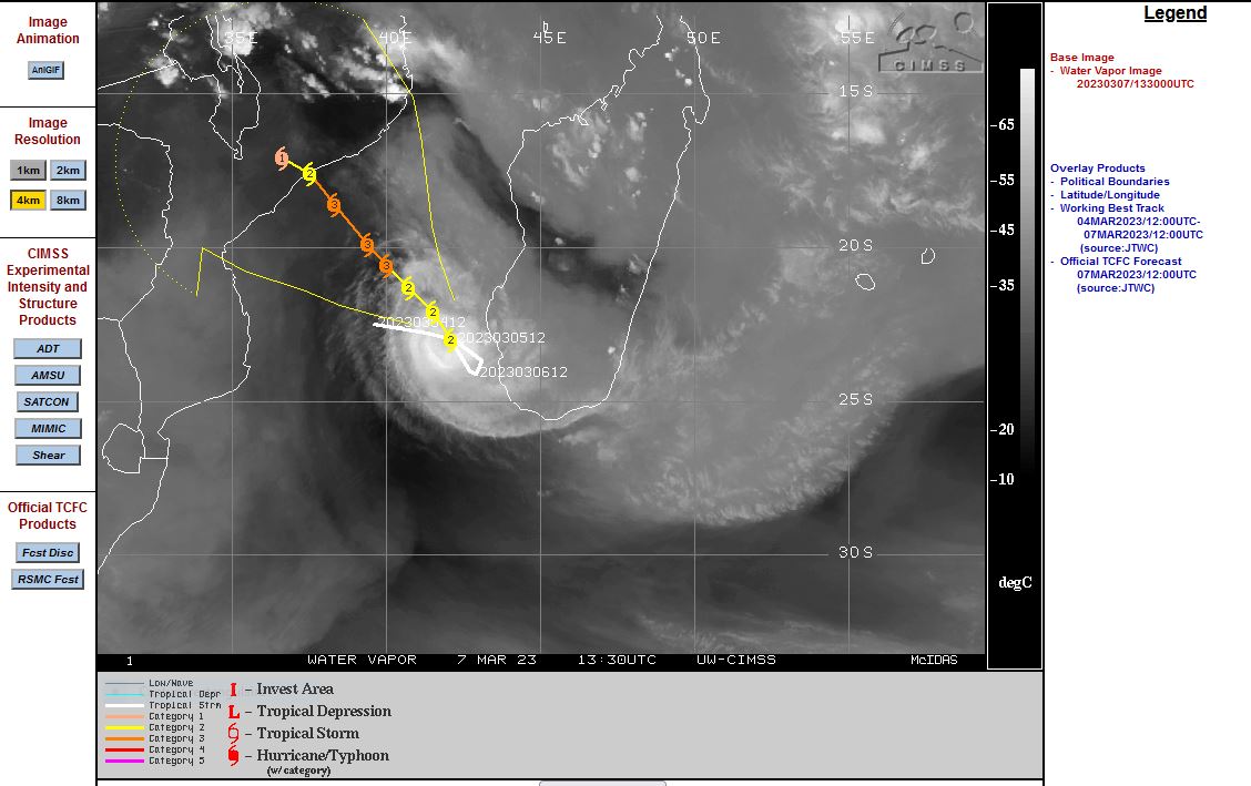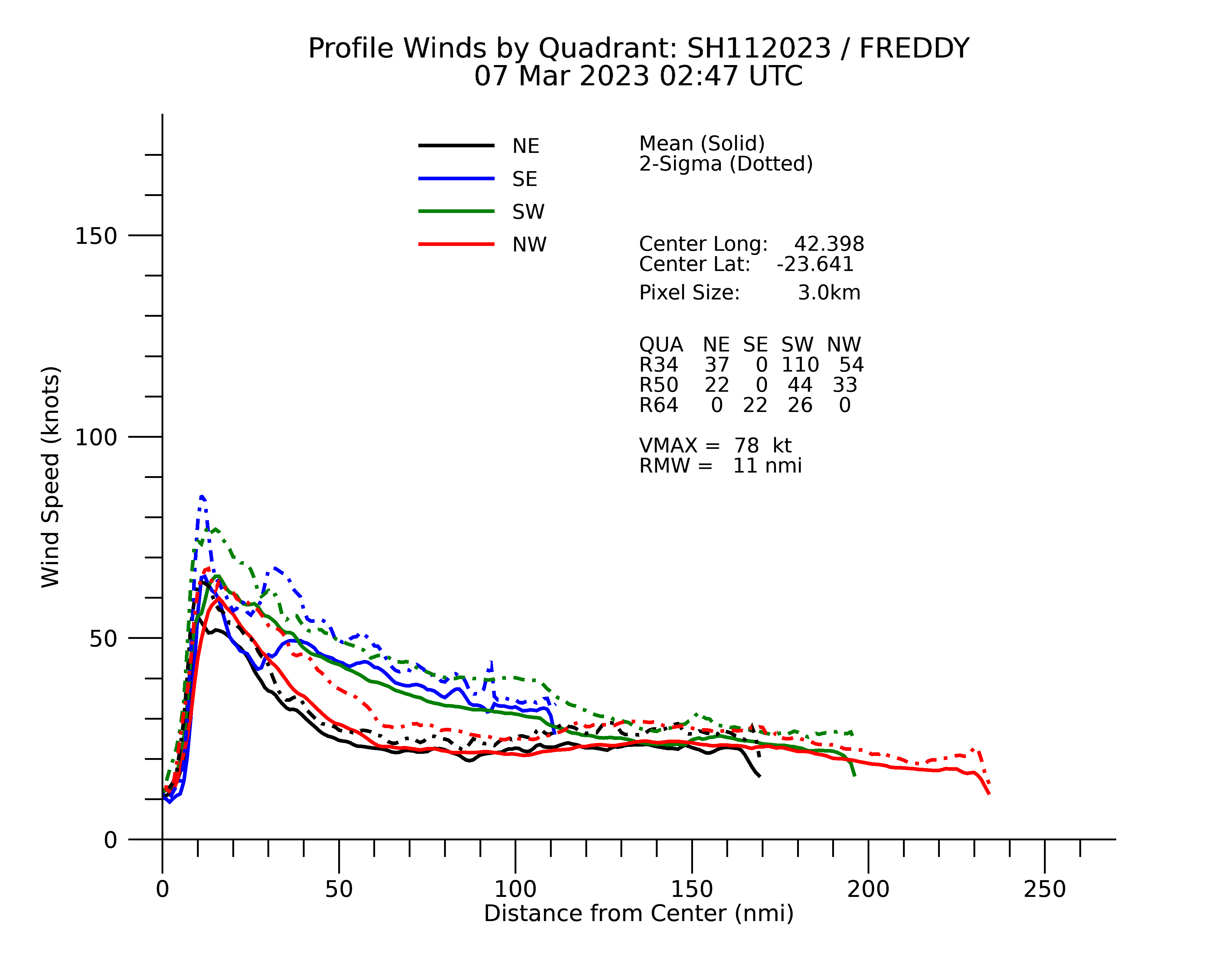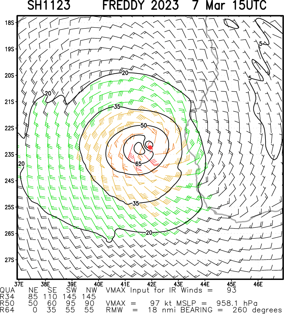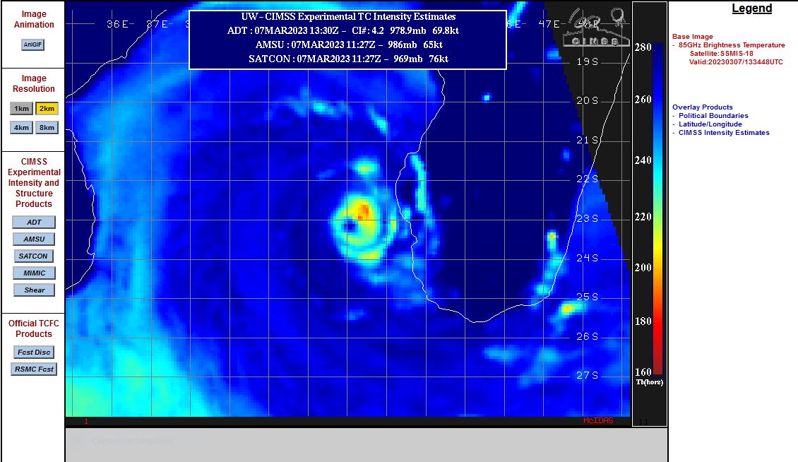 SOUTH INDIAN OCEAN/MOZ CHANNEL: TC 11S(FREDDY). CURRENT ESTIMATED INTENSITY IS 85 KNOTS CATEGORY 2 US AT 07/12UTC.
