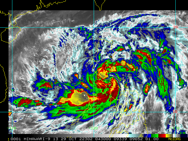 SATELLITE ANALYSIS, INITIAL POSITION AND INTENSITY DISCUSSION: TROPICAL STORM 26W IS CURRENTLY LOCATED TO THE SOUTHEAST OF MANILA AND HAS SLOWED DOWN CONSIDERABLY WHILE TRACKING WEST-NORTHWESTWARD OVER THE PAST SIX HOURS. ANIMATED MULTISPECTRAL SATELLITE IMAGERY (MSI) DEPICTS PERSISTENT DEEP CONVECTION THAT CONTINUES TO FLARE UP AND OBSCURE THE LOW LEVEL CIRCULATION CENTER (LLCC). THE INITIAL POSITION IS ASSESSED WITH HIGH CONFIDENCE BASED ON THE MULTI-AGENCY FIX POSITIONS AS WELL AS THE MSI IMAGERY. THE INITIAL INTENSITY IS ASSESSED WITH MEDIUM CONFIDENCE BASED ON THE A COMBINATION OF THE PGTW AND KNES INTENSITY ESTIMATES. ENVIRONMENTAL CONDITIONS HAVE REMAINED FAVORABLE, WITH LOW (10-15 KNOTS) VERTICAL WIND SHEAR (VWS), WARM (28-29C) SEA SURFACE TEMPERATURES (SSTS), AND GOOD WESTWARD AND EQUATORWARD OUTFLOW. HOWEVER, THE ONLY INHIBITING FACTOR IS THE RUGGED TERRAIN OF THE CENTRAL PHILIPPINES, WHICH IS DISRUPTING THE LOW-LEVEL FLOW INTO THE CORE OF THE SYSTEM.