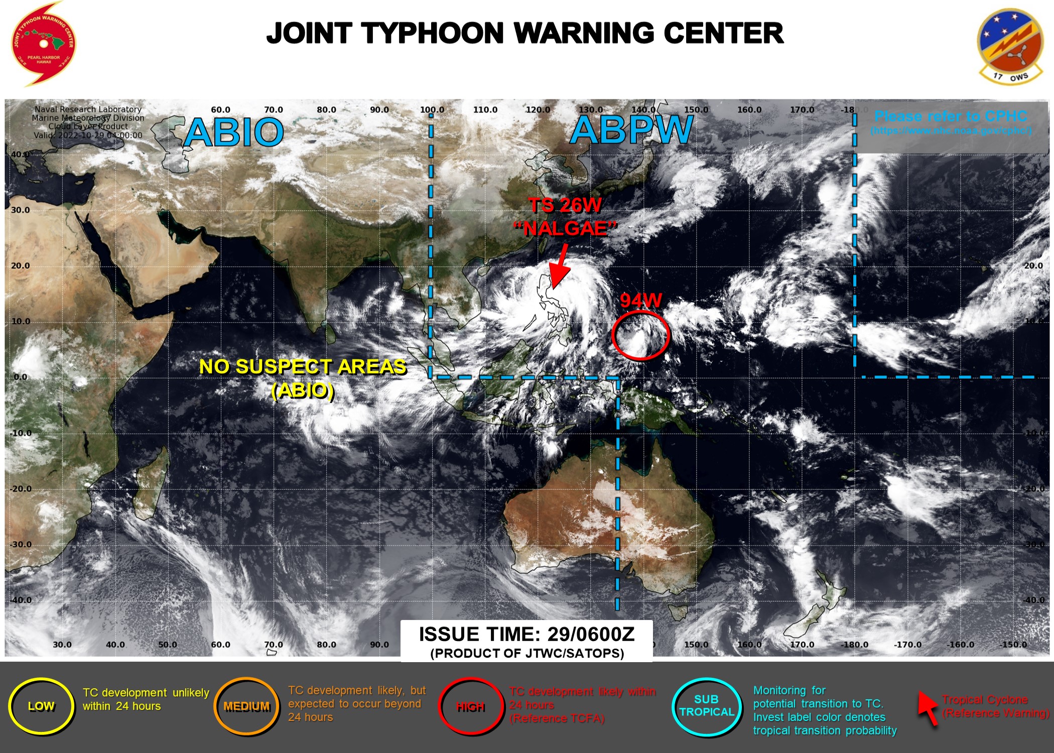 WESTERN NORTH PACIFIC: INVEST 94W. ESTIMATED LOCATION AND INTENSITY AT 29/06UTC. ADVISORY(ABPW) ISSUED AT 29/1230UTC.
