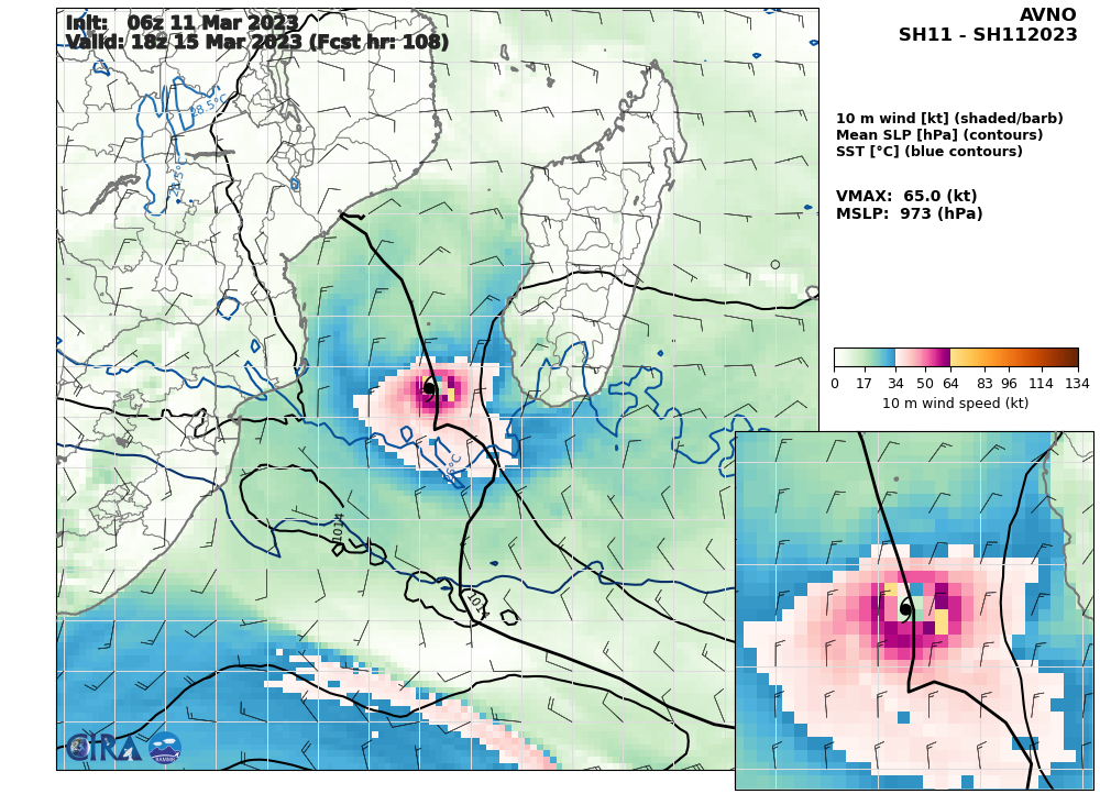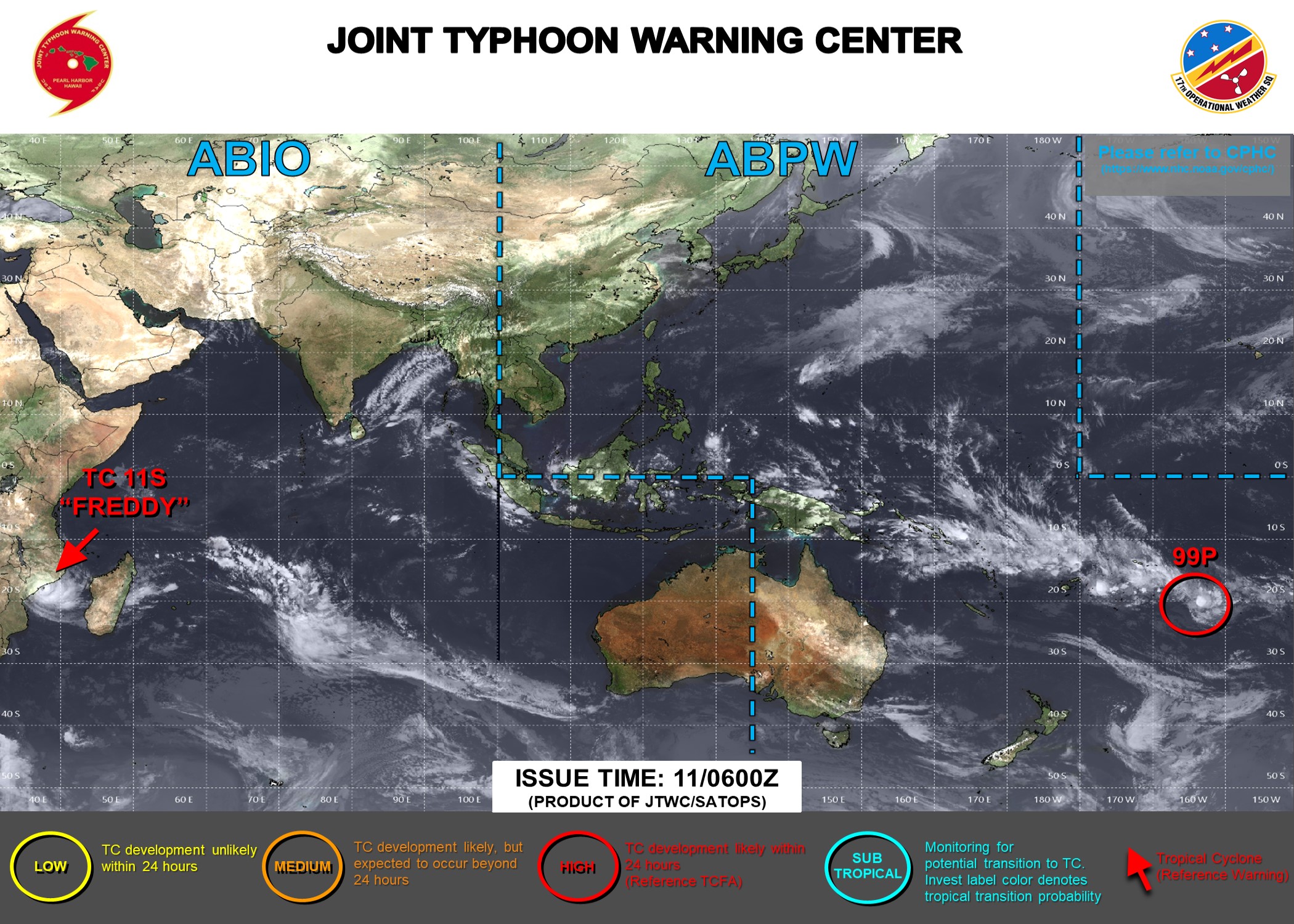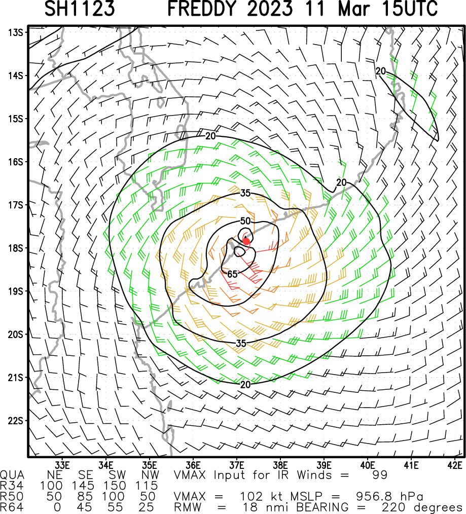 SOUTH INDIAN OCEAN/MOZ CHANNEL: TC 11S(FREDDY). CURRENT ESTIMATED INTENSITY IS 95 KNOTS CAT 2 US AT 11/12UTC.