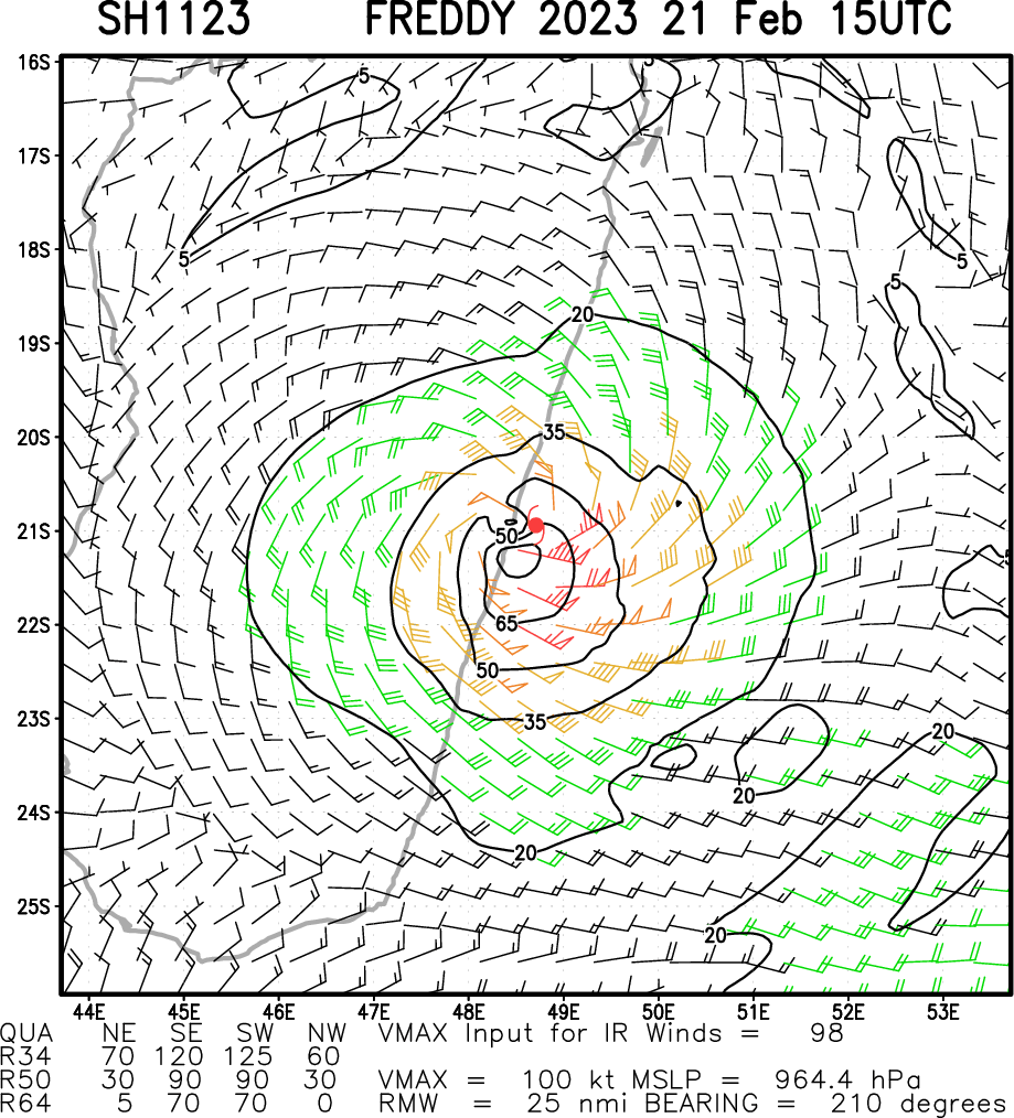 SOUTH INDIAN OCEAN: TC 11S(FREDDY). CURRENT ESTIMATED INTENSITY IS 100 KNOTS CAT 3 US .