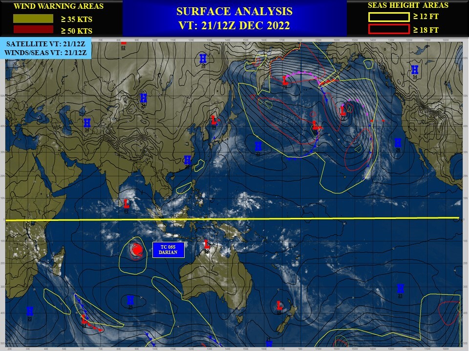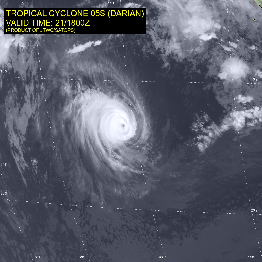 FORECAST REASONING. SIGNIFICANT FORECAST CHANGES: THERE ARE NO SIGNIFICANT CHANGES TO THE FORECAST FROM THE PREVIOUS WARNING. FORECAST DISCUSSION: TC DARIAN WILL TRACK MORE WESTWARD UNDER THE STEERING INFLUENCE OF THE STR TO THE SOUTH THAT IS RECEDING EASTWARD. BY TAU 72, THE CYCLONE WILL BEGIN TO ROUND THE STR AXIS AND TRACK MORE SOUTHWARD. THE UPPER LEVEL ENVIRONMENT WILL REMAIN FAVORABLE WITH LOW VWS AND STRONG RADIAL OUTFLOW; HOWEVER, THE ALONG-TRACK SST IS PROJECTED TO SLOWLY COOL LEADING TO A GRADUAL WEAKENING UP TO TAU 72. AFTERWARD, AS THE SYSTEM TRACKS MORE POLEWARD, SST IS EXPECTED TO COOL MORE RAPIDLY, RESULTING IN A MORE ACCELERATED WEAKENING. BY TAU 120, TC 05S WILL BE REDUCED TO 60 KTS.