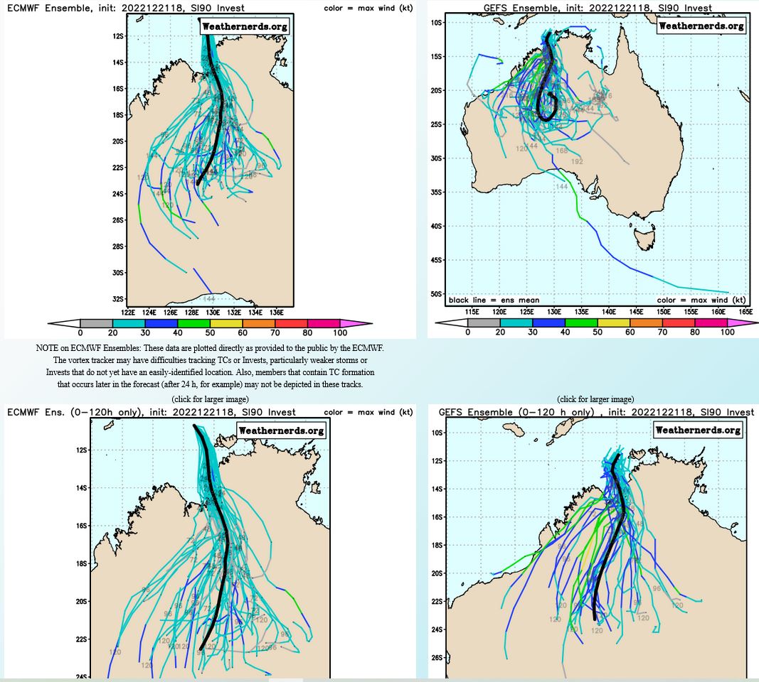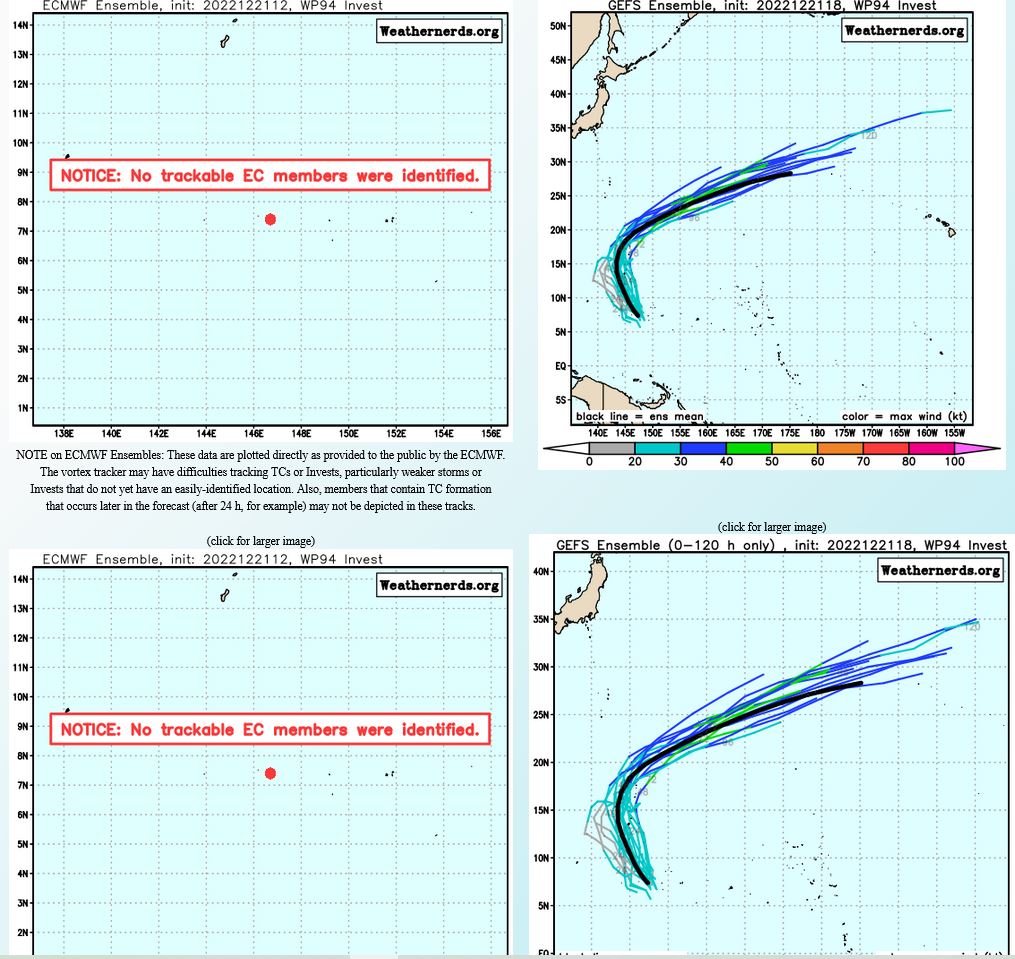 MODEL DISCUSSION: NUMERICAL MODELS ARE IN TIGHT AGREEMENT WITH A GRADUAL AND EVEN SPREADING TO 84NM AT TAU 72. AFTERWARD, THE MEMBERS SPREAD OUT SIGNIFICANTLY ALONG-TRACK AND UP TO 286NM ACROSS-TRACK BY TAU 120 WITH NVGM ON THE RIGHT AND EEMN ON THE LEFT MARGIN OF THE MODEL ENVELOPE. IN VIEW OF THIS, THERE IS HIGH CONFIDENCE IN THE JTWC TRACK FORECAST UP TO TAU 72, THEN LOW CONFIDENCE AFTERWARD.
