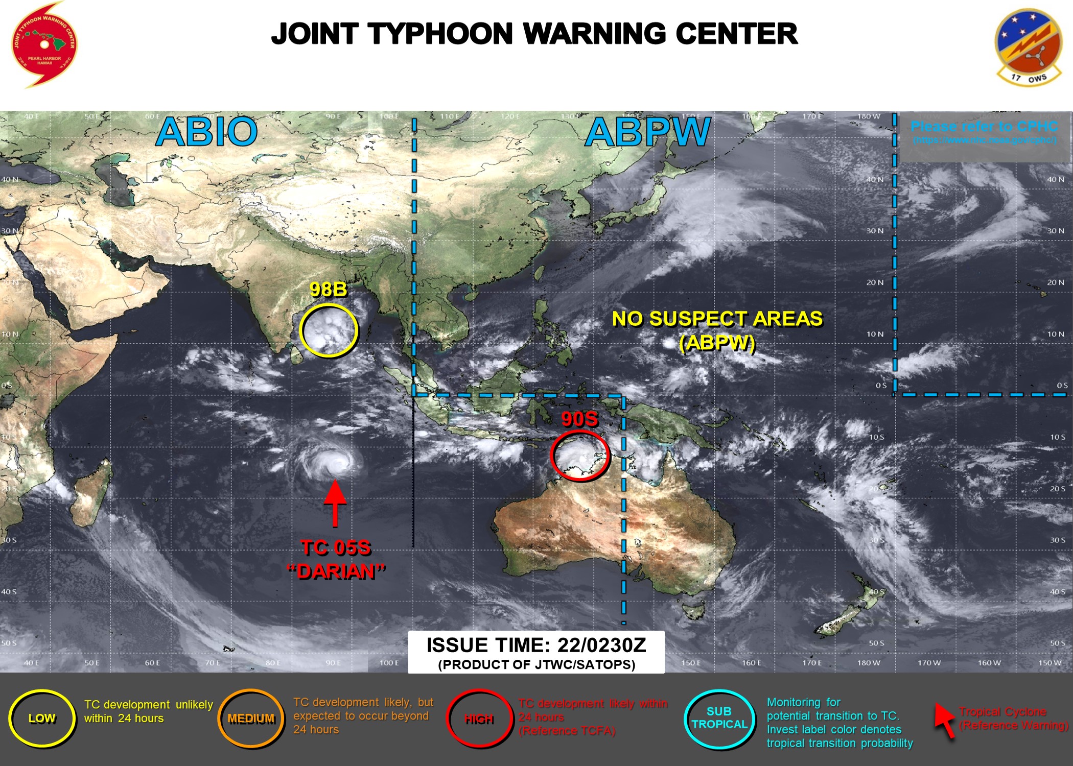 THE AREA OF CONVECTION (INVEST 90S) PREVIOUSLY LOCATED NEAR 10.8S 128.1E IS NOW LOCATED NEAR 11.5S 129.5E, APPROXIMATELY 98 NM NORTHWEST OF DARWIN, AUSTRALIA. ANIMATED ENHANCED INFRARED SATELLITE IMAGERY SHOWS A PERSISTENT AND CONSOLIDATING AREA OF DEEP CONVECTION THAT IS SHEARED WESTWARD OF THE LOW LEVEL CIRCULATION. ANALYSIS INDICATES 90S IS IN A MARGINALLY FAVORABLE ENVIRONMENT FOR DEVELOPMENT WITH GOOD DIVERGENCE ALOFT AND VERY WARM (30-31C) SST IN THE TIMOR SEA OFFSET BY HIGH (25-30 KNOT) EASTERLY VWS. GLOBAL MODELS ARE IN GOOD AGREEMENT THAT 90S WILL MOVE MORE SOUTHWARD OVER THE NEXT 24-48 HOURS AND POSSIBLY INTENSIFY TO WARNING CRITERIA AS IT TRACKS INTO AN AREA OF FAVORABLE VWS JUST BEFORE IT MAKES LANDFALL SOUTH OF JOSEPH BONAPARTE GULF. MAXIMUM SUSTAINED SURFACE WINDS ARE ESTIMATED AT 25 TO 30 KNOTS. MINIMUM SEA LEVEL PRESSURE IS ESTIMATED TO BE NEAR 996 MB. THE POTENTIAL FOR THE DEVELOPMENT OF A SIGNIFICANT TROPICAL CYCLONE WITHIN THE NEXT 24 HOURS IS UPGRADED TO HIGH.