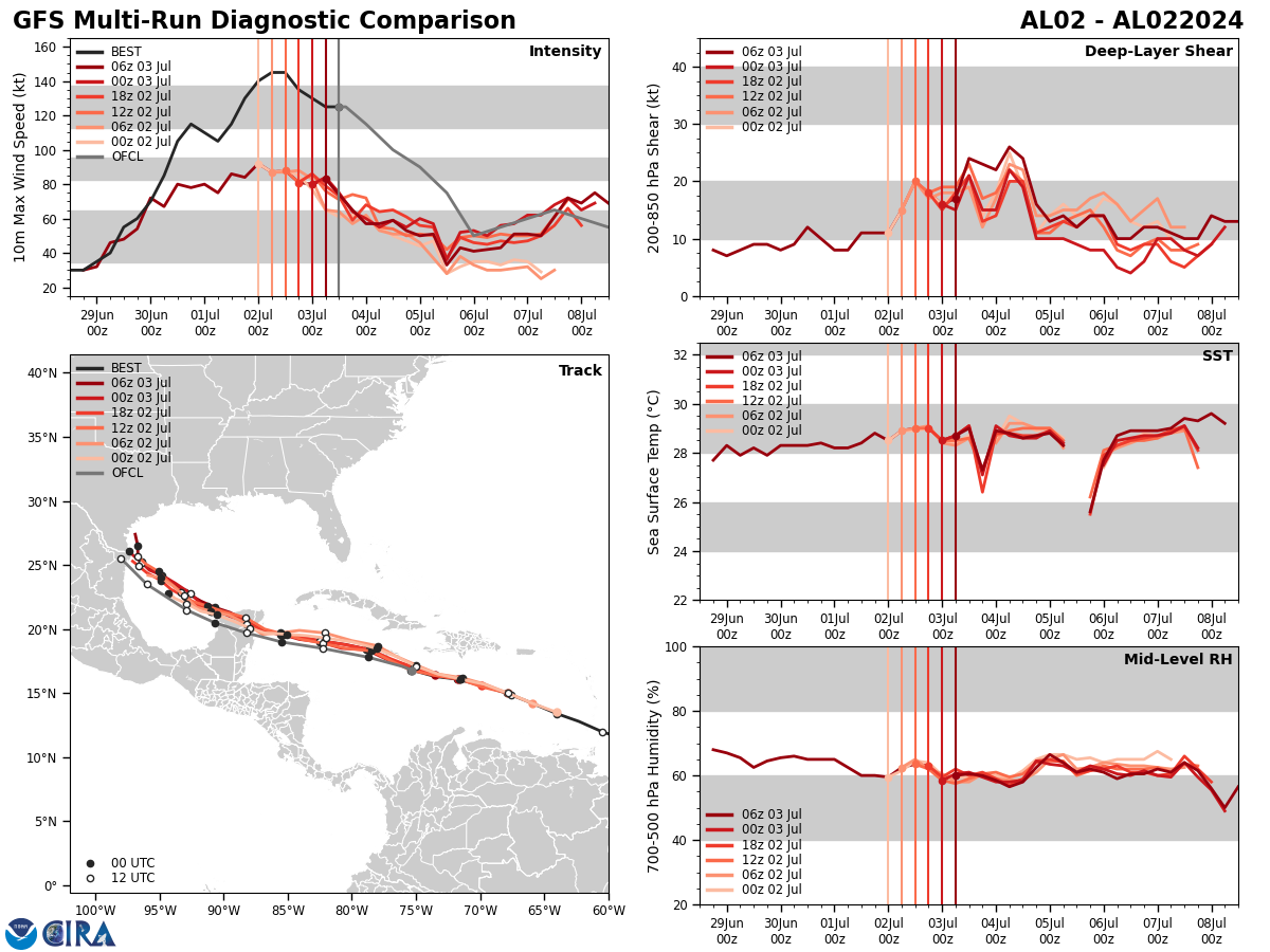GTH Outlook Discussion Last Updated - 07/02/24 Valid - 07/10/24 - 07/23/24 Based on RMM observations, the Madden-Julian Oscillation (MJO) has remained incoherent for most of June, but has shown some signs of renewed activity over the Indian Ocean during the past week, which is also supported in the upper-level velocity potential and lower level wind anomaly fields. Following potential interference with equatorial Rossby wave activity leading to a brief westward retreat of the MJO signal in RMM space during week-1, dynamical models generally favor a resumption of an eastward propagating MJO signal over the Maritime Continent, however these forecasts maintain both a slow phase speed and notably low amplitude during the next couple of weeks. The latest upper-level velocity potential anomaly forecasts from the GEFS and ECMWF are also reflective of a slow phase speed, but point to a more organized MJO than the RMM forecasts based on a continued wave-1 pattern and an increase MJO based signals indicated in the objective wave-number frequency filtering as it crosses the Maritime Continent. Analysis of the predicted wind and OLR spatial fields suggests that this strength discrepancy in the MJO forecast tools may be attributed to anomalies that are of opposite sign on both sides of the equator, which could be offsetting any coherent intraseasonal activity in the RMM zonal averaging with the MJO expressing itself more over one hemisphere. As a result, the outlook relies more on velocity potential forecast guidance later in July, where constructive interference between the MJO and a low frequency footprint of enhanced divergence aloft established over the Maritime Continent is expected to provide a large-scale environment favorable for tropical cyclogenesis in the western Pacific. Conversely, decreased chances for Tropical Cyclone (TC) development are anticipated over the eastern Pacific and Atlantic towards the middle of July following a pair of TCs that formed during the past week in the Atlantic basin. In the Bay of Campeche, TC Chris formed on 7/1 and briefly peaked at Tropical Storm intensity before tracking over eastern Mexico and dissipating later in the day. Chris brought locally heavy rainfall, periods of high winds and flooding to parts of eastern Mexico within the last day. However, the big headliner is TC Beryl, which developed in the Main Development Region (MDR) on 6/29. This system underwent rapid intensification and became the first Major Hurricane of the Atlantic season, and has already brought heavy rainfall, strong winds, flooding and damages to infrastructure for many parts of the Lesser Antilles. Since yesterday, Beryl has intensified to a powerful, category 5 Hurricane strength this morning (becoming the earliest category 5 Hurricane on record in the Atlantic) and is currently located near 15N/67W to the south of Puerto Rico. Forecasts from the National Hurricane Center (NHC) have been consistent during the past few days, and favor a slight weakening of Beryl due to increased shearing as it tracks west-northwestward across the Caribbean under a steering subtropical ridge. Despite this weakening, Beryl looks to adversely impact Jamaica and the Cayman Islands in the coming days where Hurricane Warnings are in effect as of 11am AST. Later this week, there is increased uncertainty with the exact location and strength of Beryl, but the latest official track from the NHC shows Beryl crossing the Yucatan and entering the Gulf of Mexico at Tropical Storm strength by this weekend. Regardless of whether Beryl becomes post-tropical or maintains its structure at this lead, there has been good continuity in several of the GEFS and ECMWF ensemble members curving the disturbance northwestward in the Gulf of Mexico late in week-1, and possibly bring heavy precipitation and high winds for parts of the western Gulf Coast states early in week-2. Please refer to CPCs Week-2 U.S. Hazards Outlook (https://www.cpc.ncep.noaa.gov/products/predictions/threats/threats.php) for more information on potential regional impacts. Behind Hurricane Beryl, the NHC continues to monitor another tropical disturbance (96L) in the MDR. Over the past few days, the NHC has backed off on its odds of formation (dropping from 70% to 30% chances for development in the next 7 days) consistent with the trends in the probabilistic TC tools. The last several runs of the GEFS has become more aggressive with redeepening the low as it approaches the Gulf of Honduras late in week-1, however the ECMWF is less onboard with this realization. Given this disagreement in the models, no corresponding TC area is issued, though precipitation could be enhanced over parts of the Caribbean and Gulf of Mexico during week-2. In the eastern Pacific, the NHC is also eyeing a broad area of low pressure to the south of Mexico with 50% chances for genesis during the next week. Deterministic solutions from GFS and ECMWF have become better aligned with this potential, though any TC that forms is likely to be short-lived given an increase in shearing conditions favored in the basin, likely tied to the suppressed phase of the MJO moving in later this week. For week-2, 20% chances for TC formation are posted across the South China and the Philippine Seas based on increasingly favorable circulation conditions, and some support in the probabilistic TC genesis tools. Towards the end of week-2, an equatorial Rossby wave is predicted to traverse the basin, and the GEFS features the development of a broadly cyclonic wind pattern consistent with a possible gyre event in the basin. In light of this, as well as increased support from the extended range ECMWF probabilistic tool indicating higher than normal chances above climatology, 40% chances are issued for week-3 centered over the South China Sea, with a broad 20% area extending eastward into the Philippine Sea. In the western Hemisphere, no TC formation areas are issued over eastern Pacific and the MDR for we