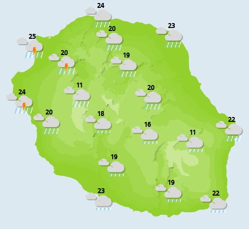 RÉUNION. Lundi journée/ Prévisions MF OI.