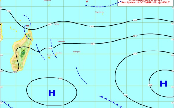 ILES SOEURS: Prévisions du temps pour demain Jeudi 14 Octobre 2021 à MAURICE et à la RÉUNION - 10/13/2021 - 18:10