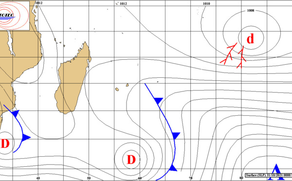 ILES SOEURS: prévisions+cartes détaillées pour ce 1ier Novembre 2021 pour MAURICE et la RÉUNION, temps calme le reste de la semaine? - 11/01/2021 - 08:34