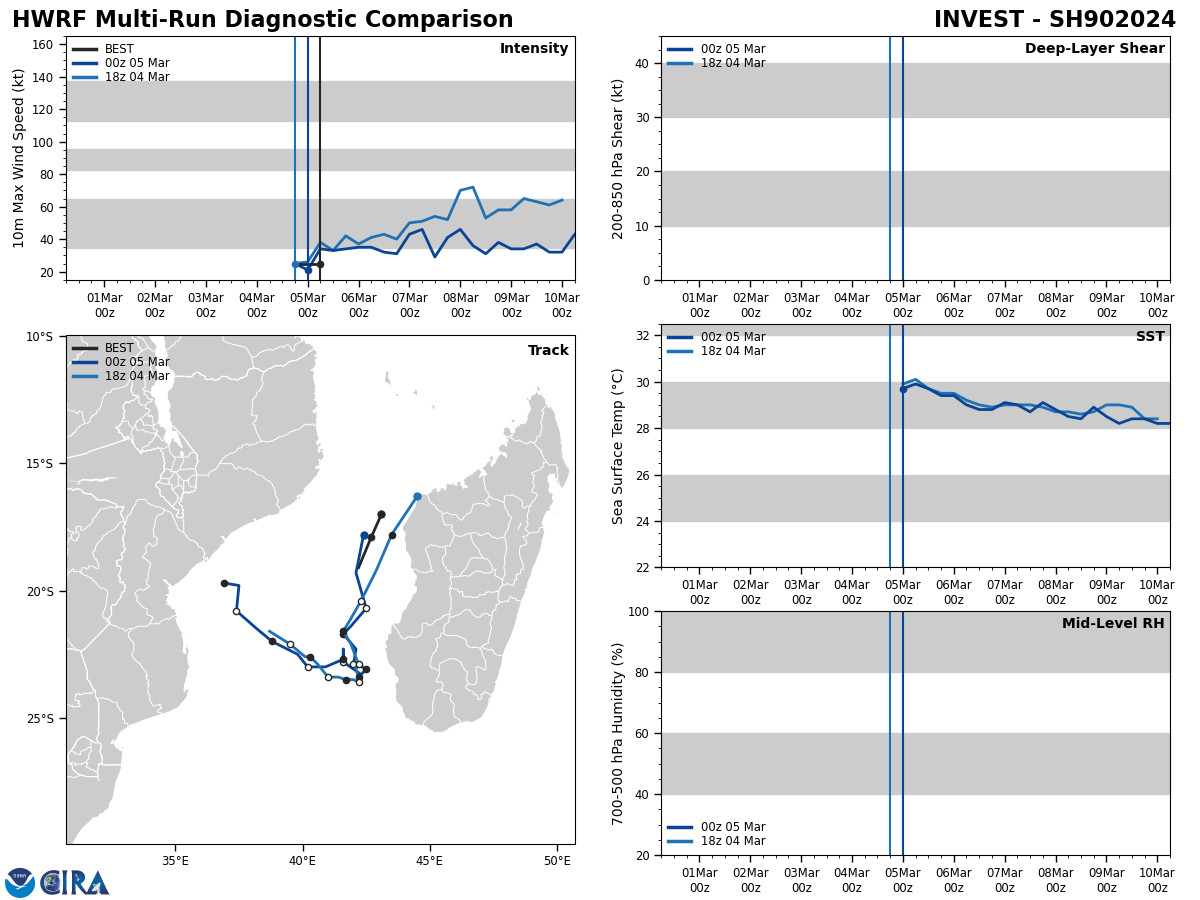 THE AREA OF CONVECTION (INVEST 90S) PREVIOUSLY LOCATED NEAR 12.2S 49.5E IS NOW LOCATED NEAR 15.3S 43.1E, APPROXIMATELY 156 NM EAST-SOUTHEAST OF NOCALA, MOZAMBIQUE. ANIMATED ENHANCED INFRARED SATELLITE IMAGERY (EIR) AND A 041508Z SSMIS 91GHZ MICROWAVE IMAGE DEPICT A MORE ORGANIZED LOW LEVEL CIRCULATION (LLC) WITH SHALLOW RAIN BANDS TO THE SOUTHERN PERIPHERY OF THE CIRCULATION. ENVIRONMENTAL ANALYSIS REVEALS A MARGINALLY FAVORABLE ENVIRONMENT FOR FURTHER DEVELOPMENT WITH LOW TO MODERATE (15-20KTS) VWS, GOOD POLEWARD OUTFLOW, AND WARM (29-30C) SSTS. GLOBAL DETERMINISTIC MODELS ARE IN GOOD AGREEMENT THAT 90S WILL CONTINUE TO CONSOLIDATE AS IT TRACKS TO THE SOUTH ALONG THE COASTLINE. MAXIMUM SUSTAINED SURFACE WINDS ARE ESTIMATED AT 20 TO 25 KNOTS. MINIMUM SEA LEVEL PRESSURE IS ESTIMATED TO BE NEAR 1006 MB. THE POTENTIAL FOR THE DEVELOPMENT OF A SIGNIFICANT TROPICAL CYCLONE WITHIN THE NEXT 24 HOURS REMAINS LOW.