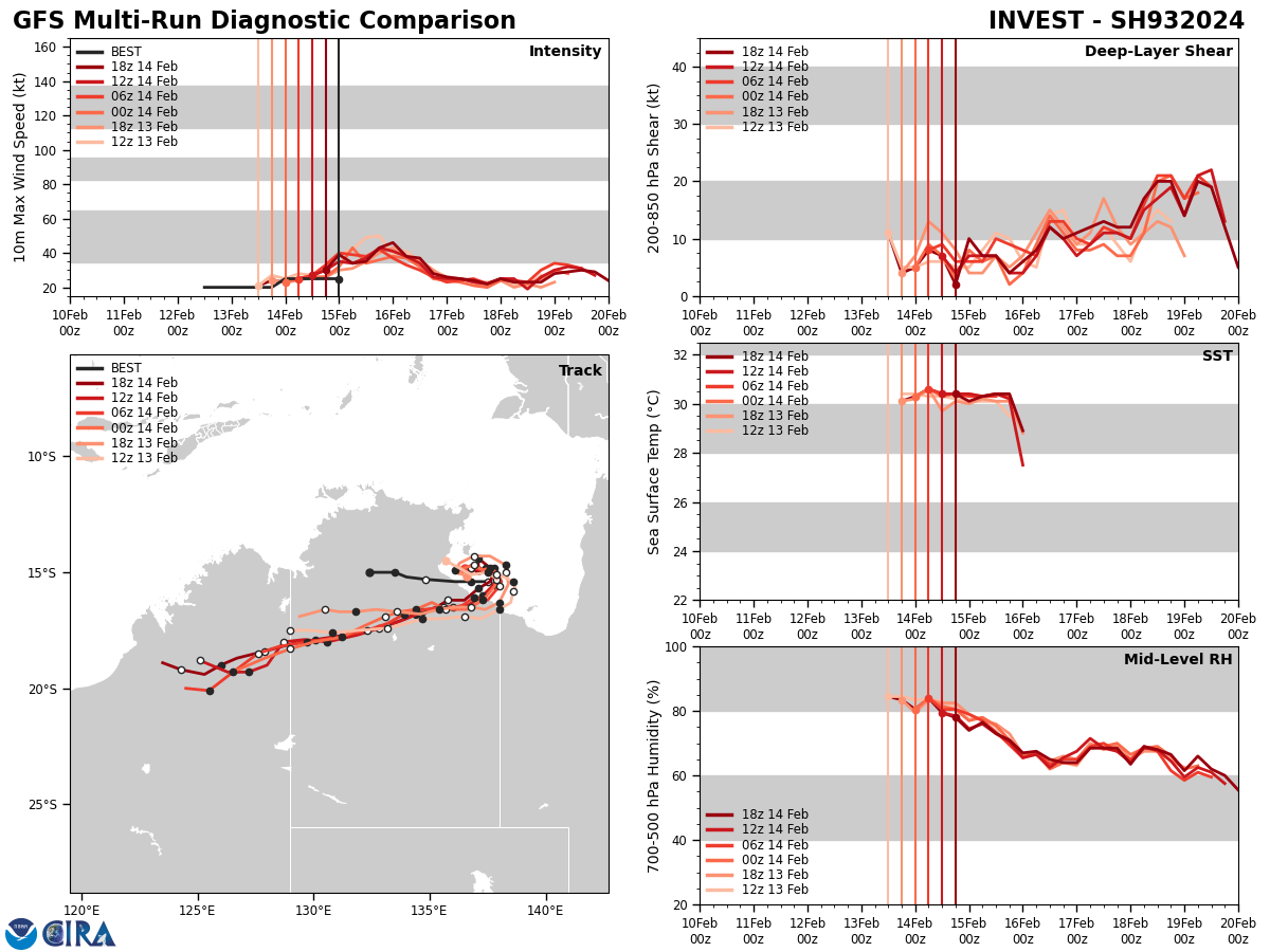 THE AREA OF CONVECTION (INVEST 93S) PREVIOUSLY LOCATED NEAR 15.5S 137.7W IS NOW LOCATED NEAR 15.6S 137.9W, APPROXIMATELY 94 NM NORTHWEST OF MORNINGTON ISLAND. ANIMATED MULTISPECTRAL SATELLITE IMAGERY AND A 142031Z SSMIS 37GHZ MICROWAVE PASS DEPICT FORMATIVE SHALLOW BANDS OF CONVECTION WRAPPING INTO A CONSOLIDATING LOW LEVEL CIRCULATION CENTER. ENVIRONMENTAL ANALYSIS REVEALS THAT 93S IS IN A MARGINALLY FAVORABLE ENVIRONMENT FOR DEVELOPMENT, WITH VERY WARM (30-31C) SEA SURFACE TEMPERATURES, MODERATE DUAL-CHANNEL OUTFLOW, AND LOW TO MARGINAL VERTICAL WIND SHEAR (15-20 KTS). GLOBAL MODELS ARE IN GOOD AGREEMENT THAT 93S WILL GENERALLY TRACK TO THE SOUTHWEST OF THE GULF OF CARPENTARIA THEN INTERACTING WITH LAND. MAXIMUM SUSTAINED SURFACE WINDS ARE ESTIMATED AT 25 TO 30 KNOTS. MINIMUM SEA LEVEL PRESSURE IS ESTIMATED TO BE NEAR 1000 MB. THE POTENTIAL FOR THE DEVELOPMENT OF A SIGNIFICANT TROPICAL CYCLONE WITHIN THE NEXT 24 HOURS IS MEDIUM.
