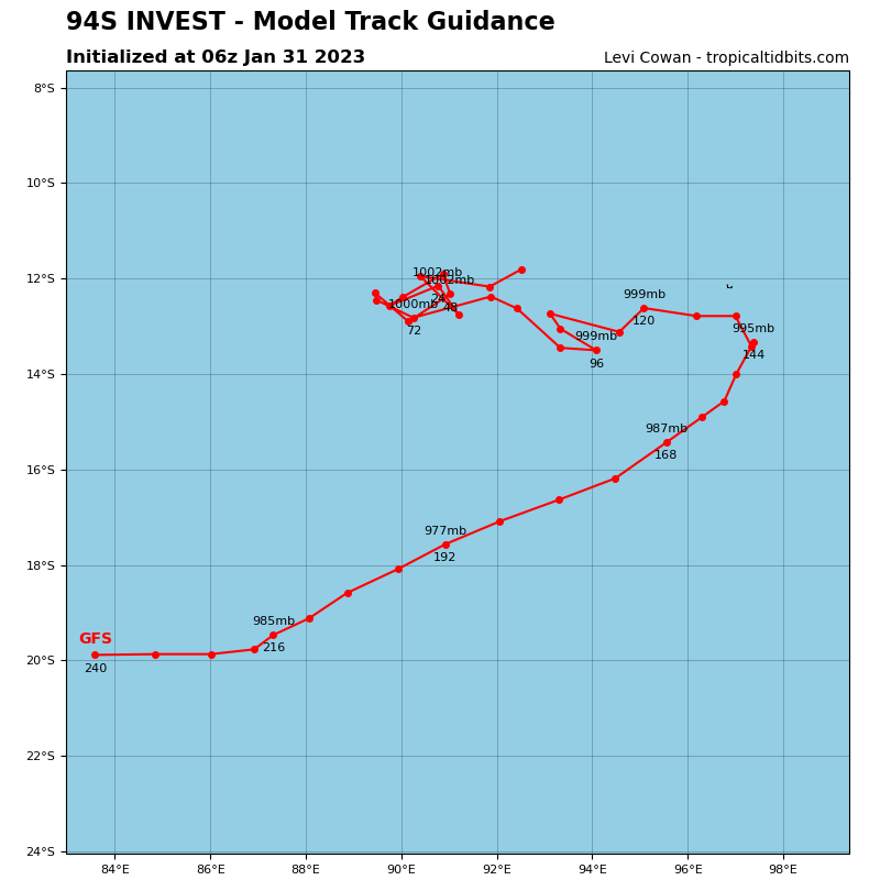 SOUTH INDIAN OCEAN: INVEST 95S. ESTIMATED LOCATION AND INTENSITY AT 31/06UTC.