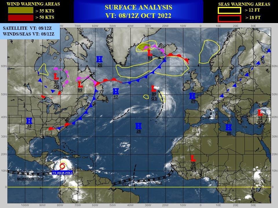 NORTH ATLANTIC: TS 13L(JULIA). ESTIMATED LOCATION AND INTENSITY AT 08/06UTC. WARNING 8 ISSUED AT 08/09UTC. NHC COMMENTS.