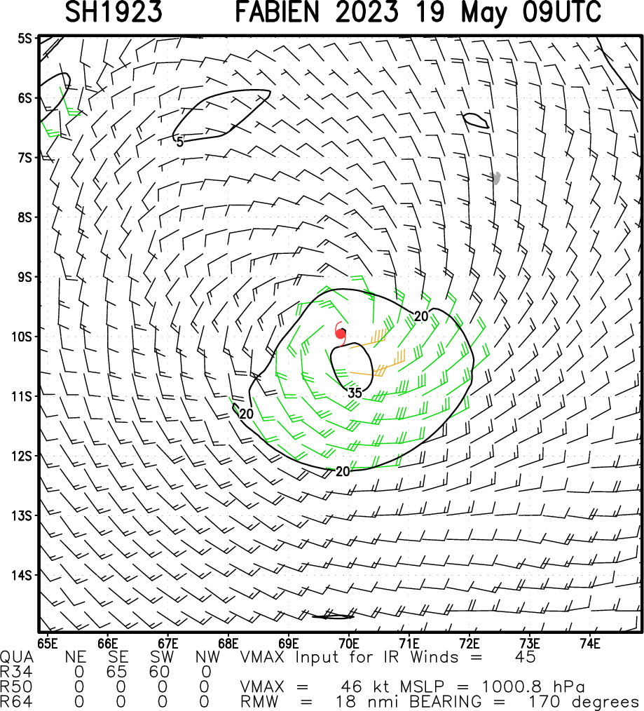 SOUTH INDIAN OCEAN: TC 19S(FABIEN). CURRENT ESTIMATED INTENSITY IS 45 KNOTS AT 19/06UTC.