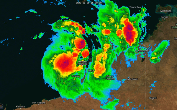 INVEST 91S SOUTH INDIAN As of 00:00 UTC Jan 05, 2020: Location: 15.7°S 121.1°E Maximum Winds: 30 kt ( 55km/h) Gusts: 40 kt ( 75km/h) Minimum Central Pressure: 1003 mb WTXS21 PGTW 050330...