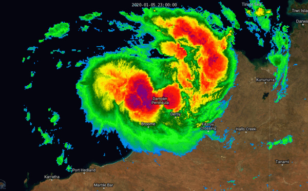 TC 06S SOUTH INDIAN As of 12:00 UTC Jan 06, 2020: Location: 17.4°S 122.0°E Maximum Winds: 50 kt ( 95km/h) Gusts: 65 kt ( 120km/h) Minimum Central Pressure: 991 mb REMARKS: 061500Z POSITION...