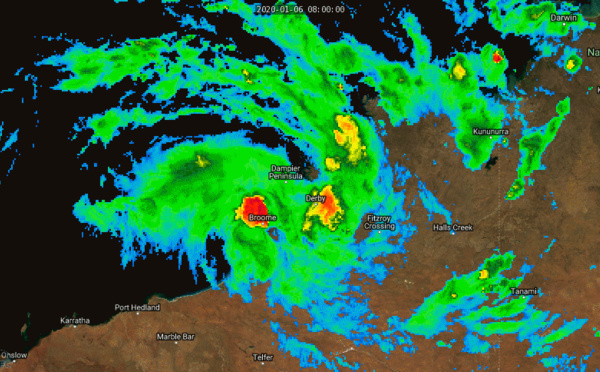 TC 06S SOUTH INDIAN As of 00:00 UTC Jan 06, 2020: Location: 15.9°S 121.9°E Maximum Winds: 35 kt ( 65km/h) Gusts: 45 kt ( 85km/h) Minimum Central Pressure: 998 mb REMARKS: 060300Z POSITION NEAR...