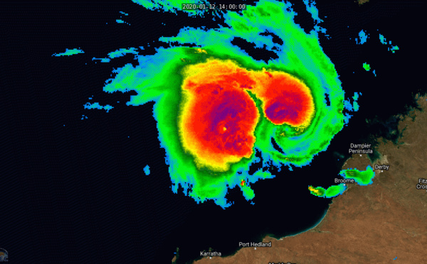 TC 07S (CLAUDIA) SOUTH INDIAN/WESTERN AUSTRALIA As of 00:00 UTC Jan 13, 2020: Location: 16.2°S 117.2°E Maximum Winds: 75 kt ( 140km/h) Gusts: 90 kt ( 170km/h) Minimum Central Pressure: 977 mb...