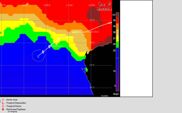 TC 07S (CLAUDIA) SOUTH INDIAN/WESTERN AUSTRALIA As of 12:00 UTC Jan 15, 2020: Location: 20.8°S 105.7°E Maximum Winds: 40 kt ( 75km/h) Gusts: 50 kt ( 95km/h) Minimum Central Pressure: 999 mb...