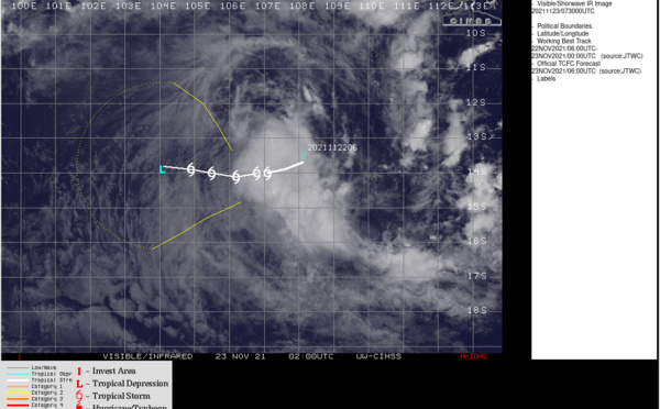 Mid-level dry air entrainment preventing significant intensification of TC 01S(PADDY), 23/09utc - 11/23/2021 - 13:33