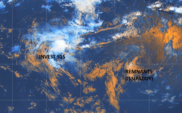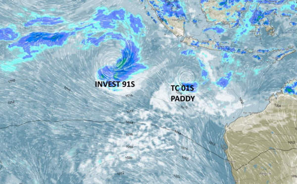 Final Warning on 01S(PADDY) with Invest 91S displaying flaring convection, 25/06utc - 11/25/2021 - 12:10