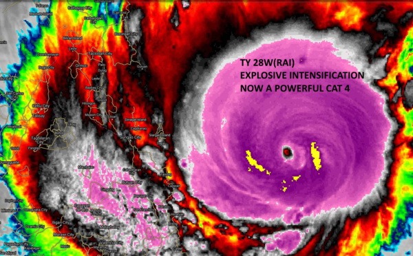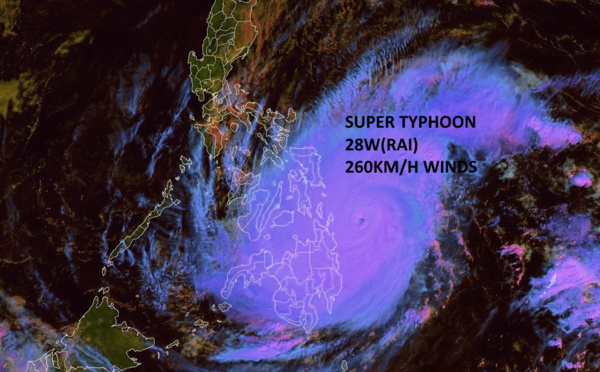 Super Typhoon 28W(RAI): explosive intensification from CAT 1 to CAT 5 over 24hours//Landfall imminent , 16/03utc - 12/16/2021 - 08:00