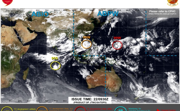 Western Pacific: 99W is High, 90W up-graded to Medium//South Indian: 90S down-graded to Low//Atlantic: still active with 16L,17L and 98L, 22/09utc updates - 09/22/2021 - 06:58