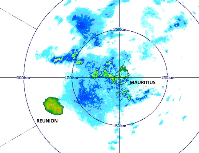 RADAR PIC FROM TACerfs: AT 0151AM the active clouds were beginning to move eastwards towards MAURITIUS.