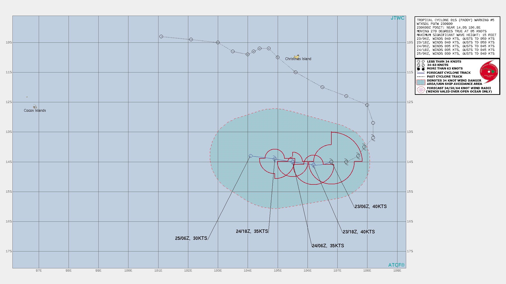 SOUTHERN HEMISPHERE/SOUTH INDIAN: TC 01S(PADDY). WARNING 5 ISSUED AT 23/09UTC