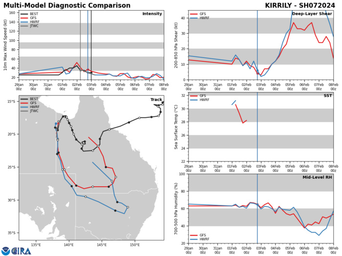 AUSTRALIA: OVERLAND REMNANTS OF TC 07P(KIRRILY). CURRENT ESTIMATED INTENSITY IS 30 KNOTS AT 03/00UTC: -15 KNOTS OVER 24 HOURS.