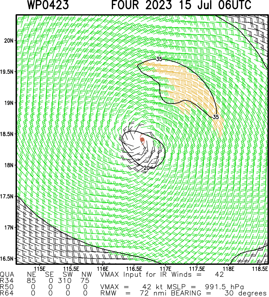 SATELLITE ANALYSIS, INITIAL POSITION AND INTENSITY DISCUSSION: ANIMATED MULTISPECTRAL SATELLITE IMAGERY (MSI) SHOWS A LARGE SYSTEM (440NM+ ACROSS) IN THE SOUTH CHINA SEA (SCS) THAT CONTINUED TO CONSOLIDATE AND HAS INTENSIFIED INTO A TROPICAL STORM WITH ITS BROAD RAIN BANDS TRAILING SOUTHWESTWARD ALL THE WAY TO BORNEO. THE INITIAL POSITION IS PLACED WITH MEDIUM CONFIDENCE BASED ON A RAGGED BUT DEFINED LLC FEATURE IN THE 142155Z SSMIS, THE INTENSITY IS ASSESSED WITH HIGH CONFIDENCE FROM THE PGTW AND D-PRINT DVORAK ESTIMATES AND REFLECTS THE 6-HR CONVECTIVE AND WRAP IMPROVEMENTS. ANALYSIS INDICATES A FAVORABLE ENVIRONMENT WITH STRONG POLEWARD OUTFLOW, LOW VWS ALOFT, AND WARM SST IN THE SOUTH CHINA SEA (SCS). THE SYSTEM IS ALSO TAPPING INTO A POLEWARD OUTFLOW CHANNEL EMANATING FROM A TUTT TO THE NORTHWEST, ALSO EVIDENT IN THE EIR LOOP.