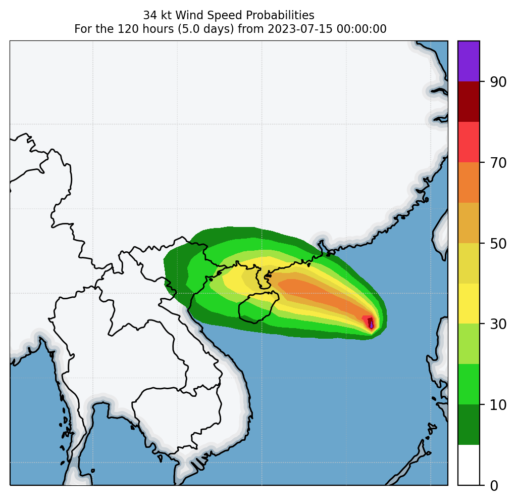 FORECAST REASONING. SIGNIFICANT FORECAST CHANGES: THERE ARE NO SIGNIFICANT CHANGES TO THE FORECAST FROM THE PREVIOUS WARNING. FORECAST DISCUSSION: TD 04W WILL CONTINUE TO TRACK GENERALLY WEST-NORTHWESTWARD UNDER THE STEERING INFLUENCE OF THE STR, OVER THE WARM SCS, MAKE LANDFALL ON THE LEIZHOU PENINSULA NEAR ZHANJIANG BEFORE TAU 60, AND CROSS THE GULF OF TONKIN BEFORE MAKING A FINAL LANDFALL ALONG THE VIETNAM-CHINA BORDER AFTER TAU 72. THE FAVORABLE ENVIRONMENT WILL FUEL SIGNIFICANT INTENSIFICATION TO A PEAK OF 90KTS AT TAU 48. LAND INTERACTION WITH RUGGED TERRAIN WILL MOSTLY BE RESPONSIBLE FOR THE GRADUAL THEN RAPID EROSION AFTER TAU 48, LEADING TO DISSIPATION BY TAU 120 AS IT TRACKS DEEP INTO THE CHINESE INTERIOR.
