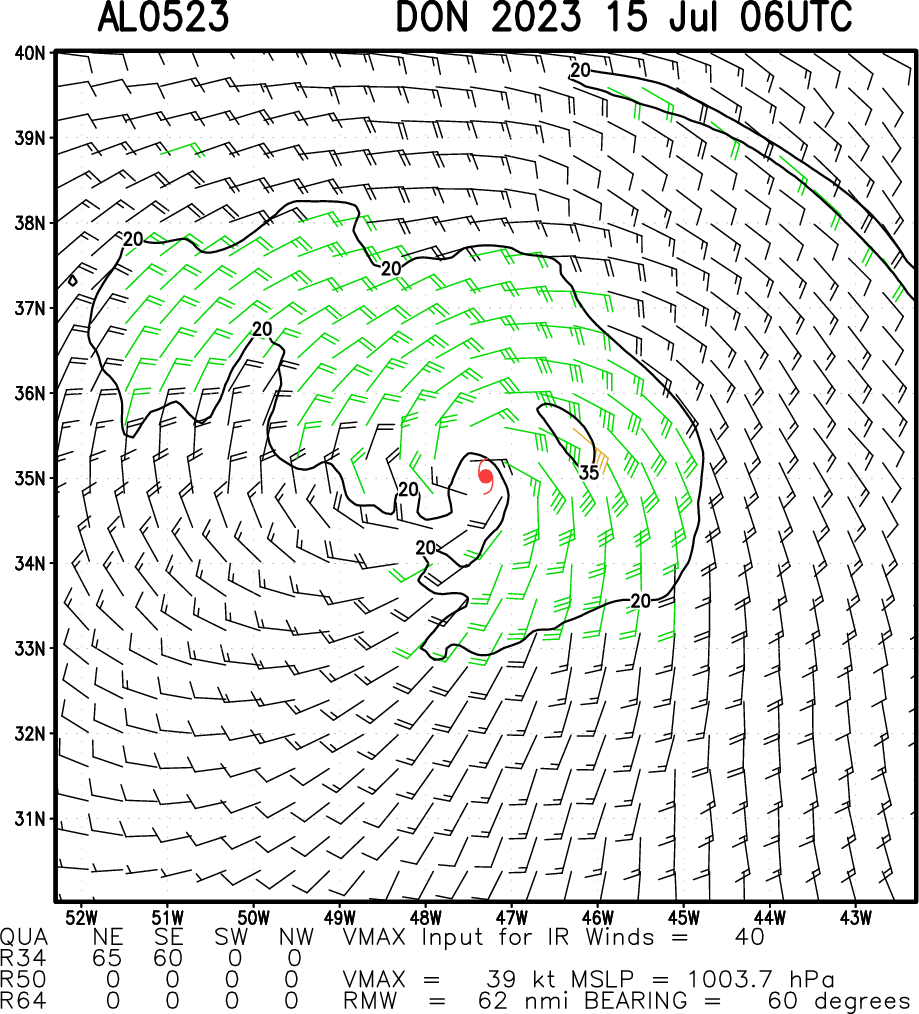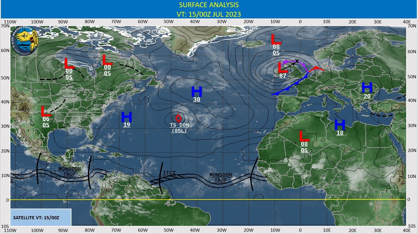 NORTH ATLANTIC OCEAN: SS 05L(DON). WARNING 4 ISSUED AT 150300UTC. ESTIMATED INTENSITY WAS 40 KNOTS.