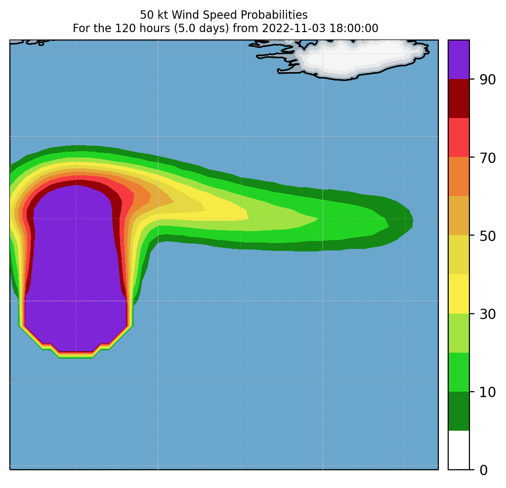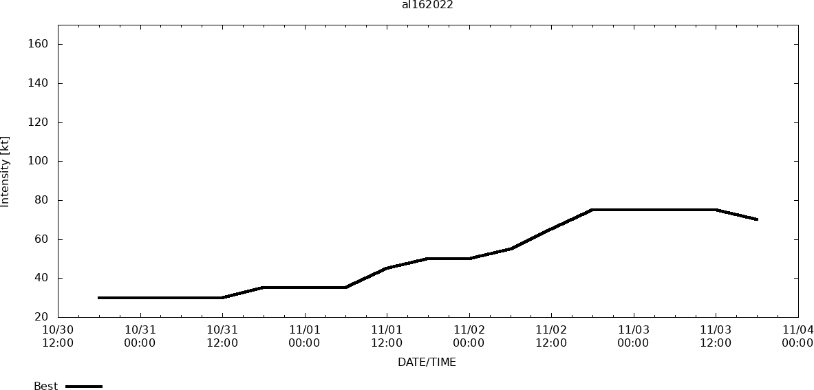 Post-Tropical Cyclone Martin Discussion Number 10 NWS National Hurricane Center Miami FL AL162022 900 PM GMT Thu Nov 03 2022 ASCAT-C data that was not available until after the issuance of the last advisory, but was valid at 1317 UTC, showed that Martin likely became frontal earlier today and the system no longer has a well-defined circulation. In addition, both TAFB and SAB evaluated the system as extratropical at 1800 UTC. Therefore, Martin is now classified as post-tropical and this will be the last NHC advisory. While Martin does not currently appear to have a well-defined center, the powerful post-tropical cyclone is expected to redevelop a well-defined center as it occludes over the next 12 to 24 h. Martin is moving at a remarkable clip of 50 kt, but should begin to slow down soon and turn north-northwestward during the next few hours. After that, the cyclone is forecast to move relatively slowly on Friday before picking up speed toward the east-southeast or east through the early weekend. Martin's maximum winds are still forecast to slowly decrease over the next few days, however the combination of Martin and other non-tropical low pressure systems are still expected to produce hazardous wind and seas over a very wide area of the North Atlantic for the next couple of days. Additional information on marine hazards can be found in High Seas Forecasts issued by the National Weather Service, the UK Met Office, and Meteo France. Links to each product are provided below. * National Weather Service: AWIPS Header NFDHSFAT1, WMO header FZNT01 KWPC, and online at ocean.weather.gov/shtml/NFDHSFAT1.php * UK Met Office: WMO header FQNT21 EGRR and online at www.metoffice.gov.uk/weather/specialist-forecasts/coast-and-sea/high -seas-forecast/ * Meteo France: WMO header FQNT50 LFPW and online at www.meteofrance.com/previsions-meteo-marine/bulletin/grandlarge/ metarea2. FORECAST POSITIONS AND MAX WINDS INIT 03/2100Z 50.5N 34.5W 70 KT 80 MPH...POST-TROPICAL 12H 04/0600Z 55.0N 35.0W 70 KT 80 MPH...POST-TROP/EXTRATROP 24H 04/1800Z 56.5N 35.0W 60 KT 70 MPH...POST-TROP/EXTRATROP 36H 05/0600Z 56.5N 31.0W 55 KT 65 MPH...POST-TROP/EXTRATROP 48H 05/1800Z 55.5N 25.0W 50 KT 60 MPH...POST-TROP/EXTRATROP 60H 06/0600Z 55.0N 17.0W 45 KT 50 MPH...POST-TROP/EXTRATROP 72H 06/1800Z...DISSIPATED $$ Forecaster D. Zelinsky