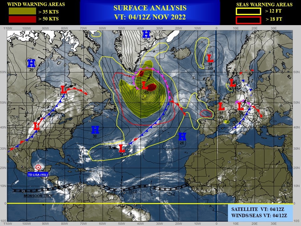 NORTH ATLANTIC OCEAN:TD 15L(LISA). ESTIMATED LOCATION AND INTENSITY AT 04/00UTC. NHC COMMENTS.