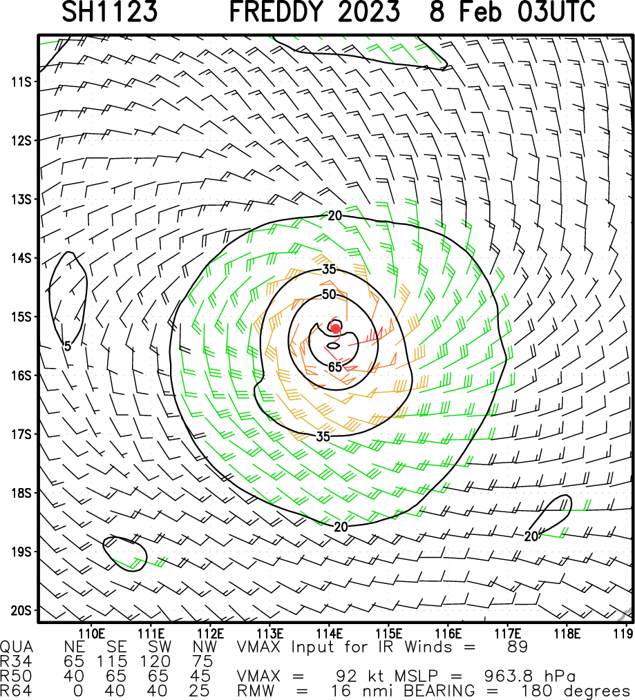 SOUTH INDIAN OCEAN: TC 11S(FREDDY). ESTIMATED LOCATION AND INTENSITY AT 08/00UTC. WARNING 8 ISSUED AT 08/03UTC.
