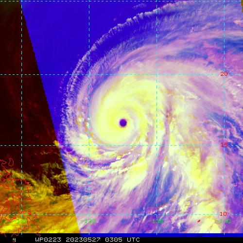 WESTERN NORTH PACIFIC: SUPER TY 02W(MAWAR). CURRENT ESTIMATED INTENSITY IS 135 KNOTS(CAT 4 US) AT 27/06UTC: -20 KNOTS OVER 24HOURS.