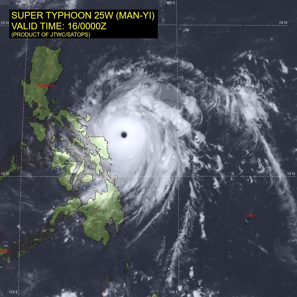 WESTERN NORTH PACIFIC: STY 25W(MAN-YI). 16/06UTC ESTIMATED INTENSITY IS 140 KNOTS/CAT 5 US: + 50 KNOTS OVER 24 HOURS