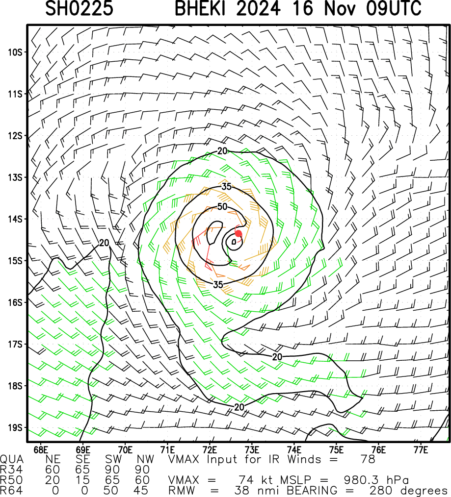 SOUTHERN HEMISPHERE/SOUTH INDIAN OCEAN: TC 02S(BHEKI). 16/06UTC ESTIMATED INTENSITY IS 75 KNOTS/CAT 1 US: + 10 KNOTS OVER 24 HOURS