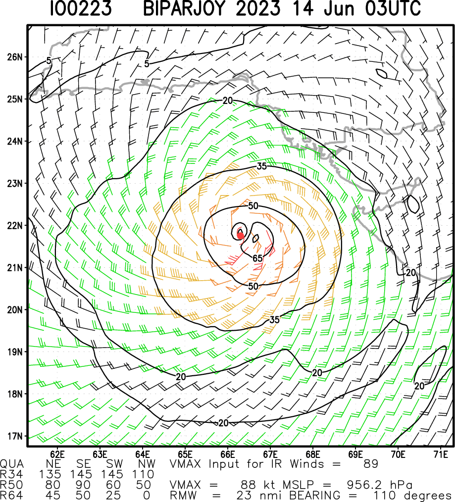 NORTH INDIAN/ARABIAN SEA: TC 02A(BIPARJOY). ESTIMATED LOCATION AND INTENSITY AT 140000UTC. CATEGORY 2 US.