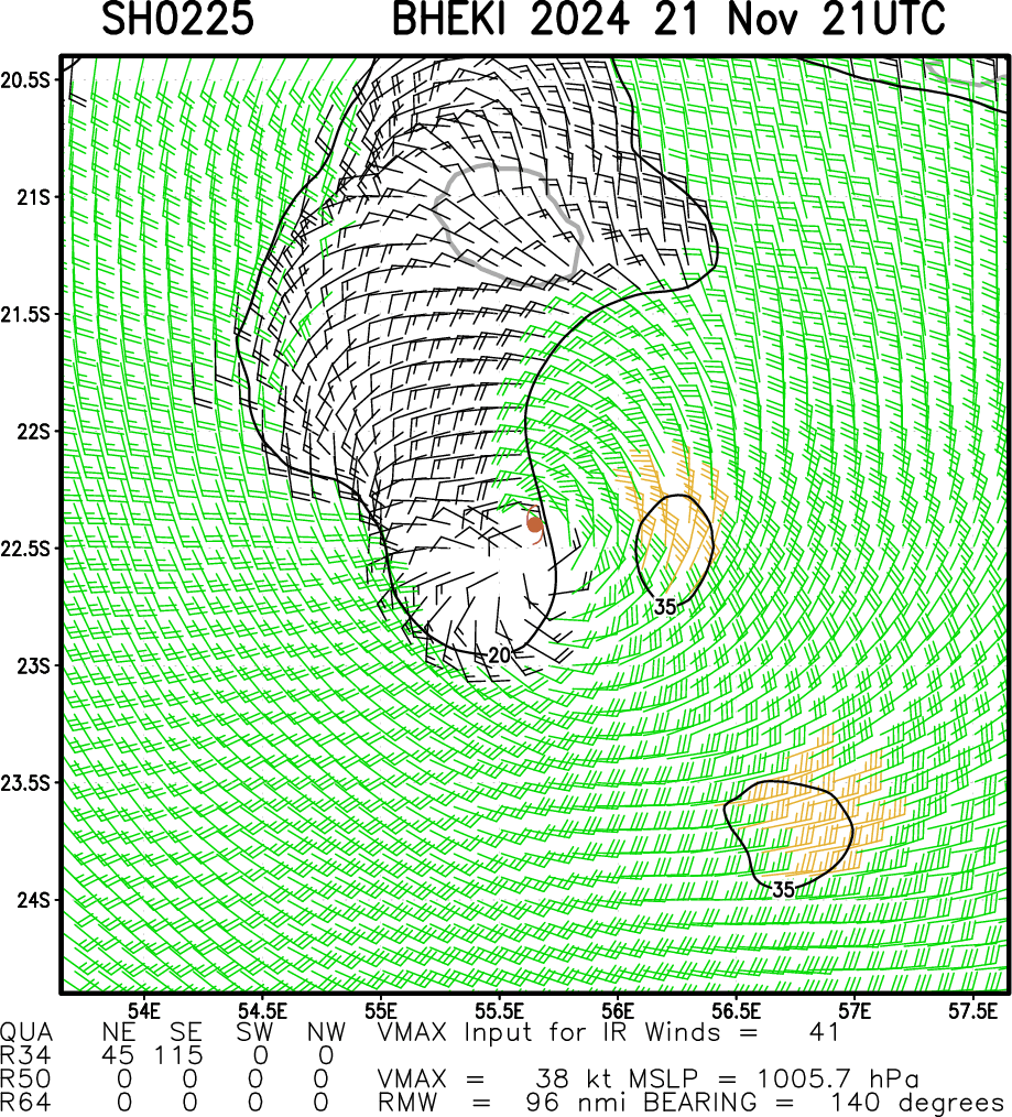 SOUTHERN HEMISPHERE/SOUTH INDIAN OCEAN: TC 02S(BHEKI). 22/00UTC ESTIMATED LOCATION AND INTENSITY : STABLE OVER 24 HOURS