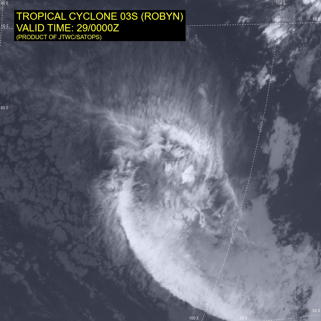SOUTHERN HEMISPHERE/SOUTH INDIAN OCEAN: TC 03S(ROBYN). 29/06UTC ESTIMATED INTENSITY IS 40 KNOTS: - 5 KNOTS OVER 24 HOURS.PEAK INTENSITY WAS 55 KNOTS
