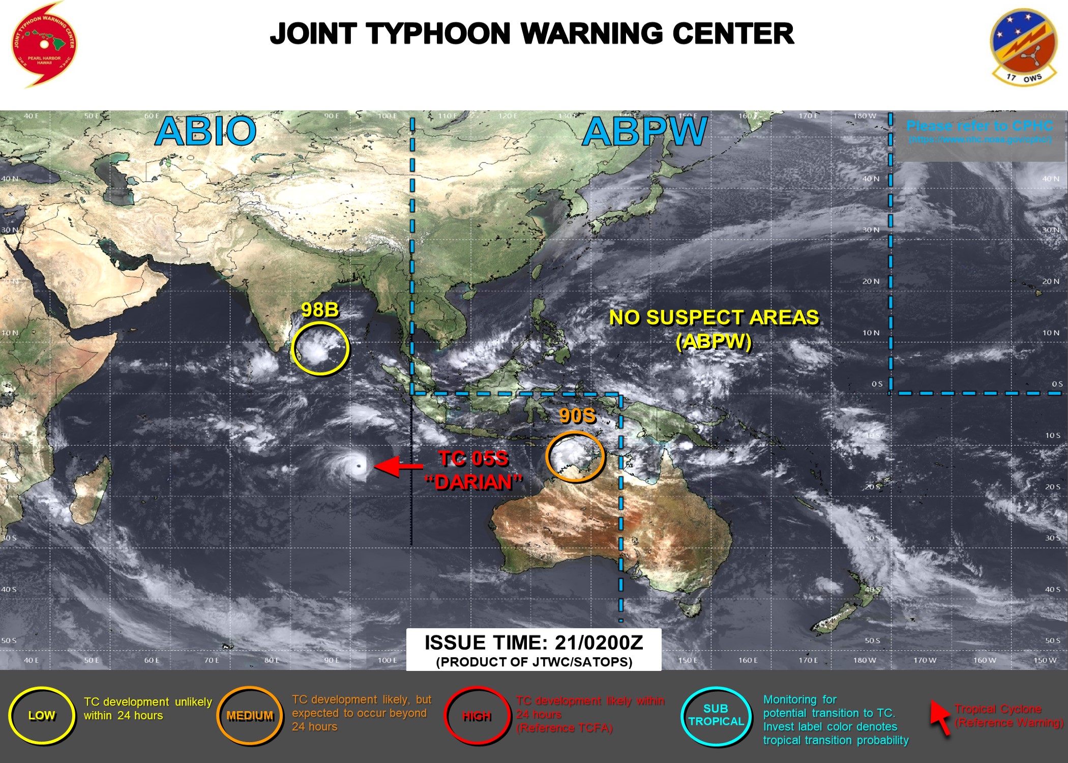 SOUTH INDIAN/TIMOR SEA: INVEST 90S. ESTIMATED LOCATION AND INTENSITY AT 21/00UTC. ADVISORY(ABIO) ISSUED AT 21/02UTC.
