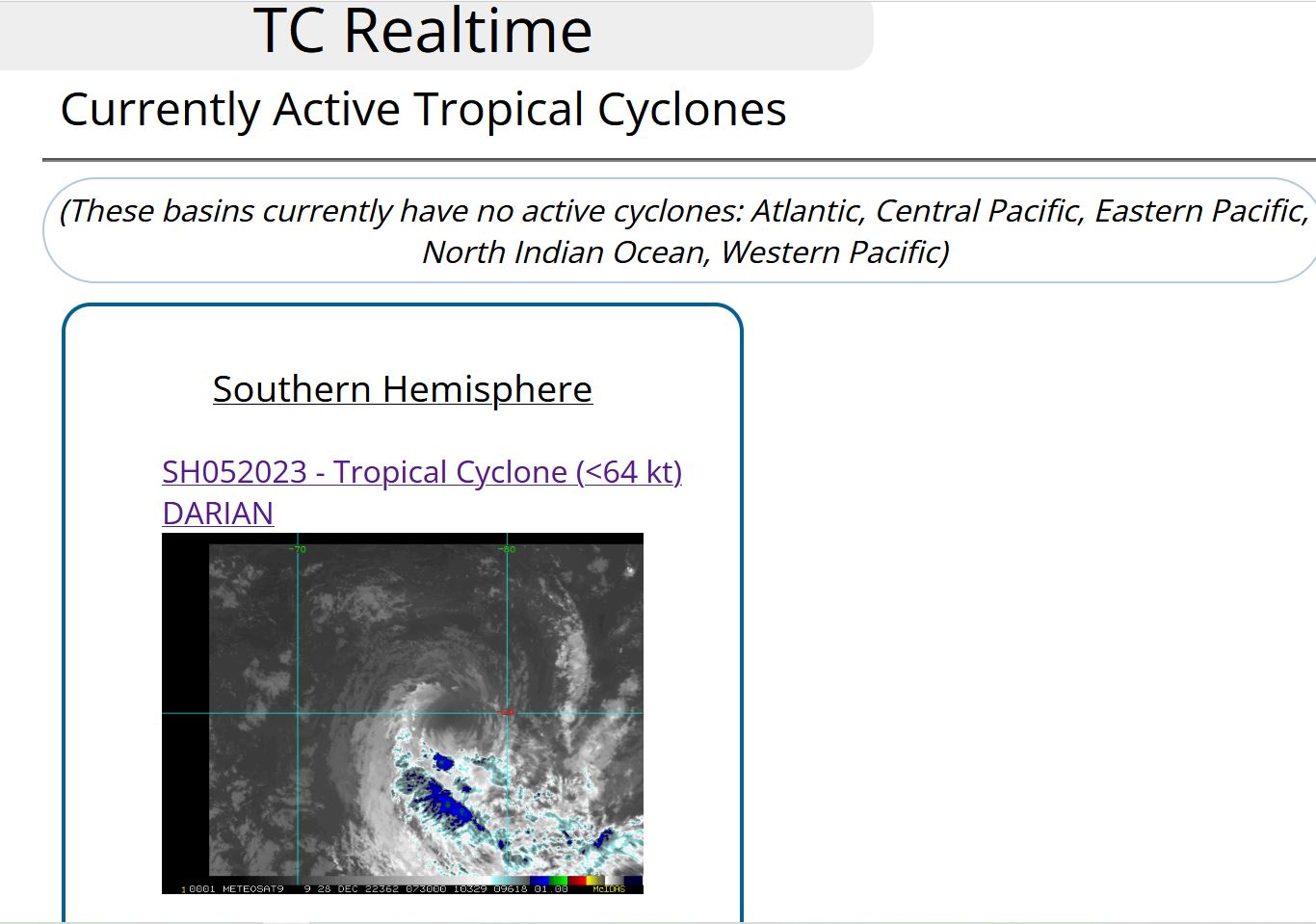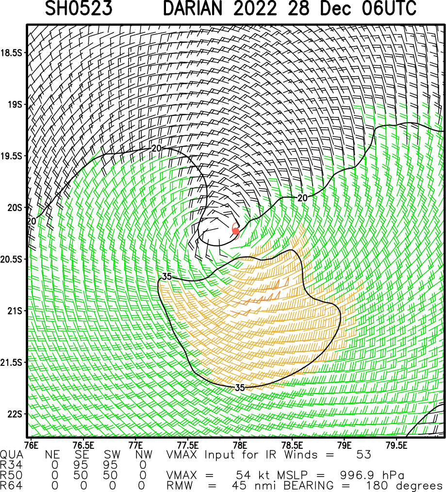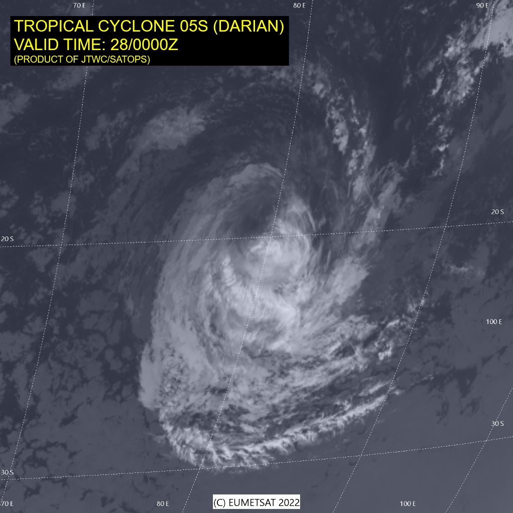 SOUTH INDIAN OCEAN: TC 05S(DARIAN). ESTIMATED LOCATION AND INTENSITY AT 28/06UTC.