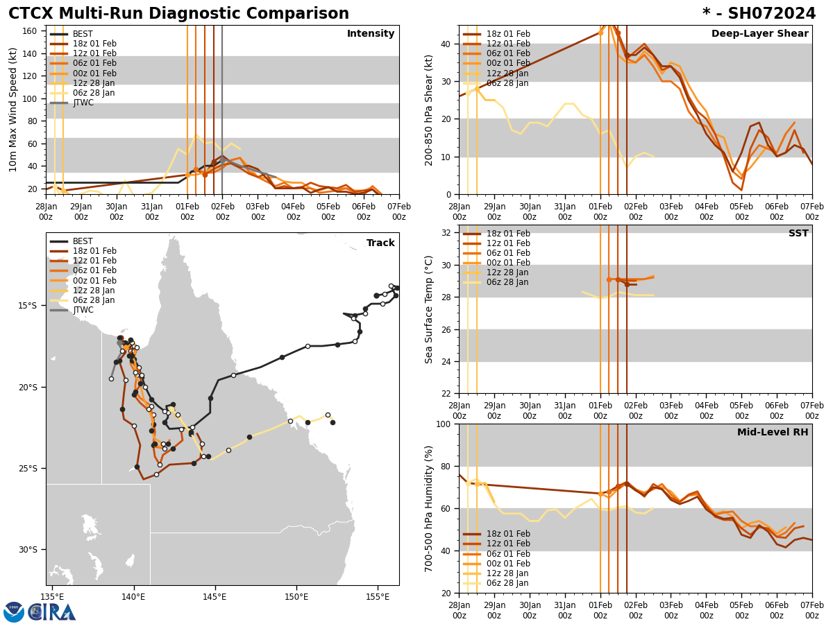 SATELLITE ANALYSIS, INITIAL POSITION AND INTENSITY DISCUSSION: TROPICAL CYCLONE (TC) 07P HAS CONTINUED TO CONSOLIDATE OVER THE PAST SIX HOURS, WITH THE UPPER-LEVEL CIRCULATION CENTER NOW VERTICALLY ALIGNED WITH THE LOW-LEVEL CIRCULATION CENTER (LLCC). ANIMATED MULTISPECTRAL SATELLITE IMAGERY (MSI) DEPICTS A WELL-ORGANIZED TROPICAL CYCLONE WITH A CENTRAL DENSE OVERCAST FEATURE OBSCURING THE LLCC WITH CONVECTIVE BANDING WRAPPING INTO THE CENTER. ANIMATED RADAR IMAGERY REVEALS TIGHTLY-CURVED BANDING WRAPPING INTO A WELL-DEFINED LLCC, WHICH SUPPORTS THE INITIAL POSITION WITH HIGH CONFIDENCE. SURFACE OBSERVATIONS FROM MORNINGTON ISLAND RANGE FROM 31-35 KNOTS SUSTAINED (10-MINUTE AVERAGE) WITH GUSTS 43-46 KNOTS. WHEN ADJUSTED TO A 1-MINUTE AVERAGE, THESE SUSTAINED WINDS RANGE FROM ABOUT 33-37 KNOTS. BASED ON THE SURFACE OBSERVATIONS, SLP VALUES AND THE OVERALL CONVECTIVE STRUCTURE, THE INITIAL INTENSITY IS ASSESSED AT 45 KNOTS WITH MEDIUM CONFIDENCE.
